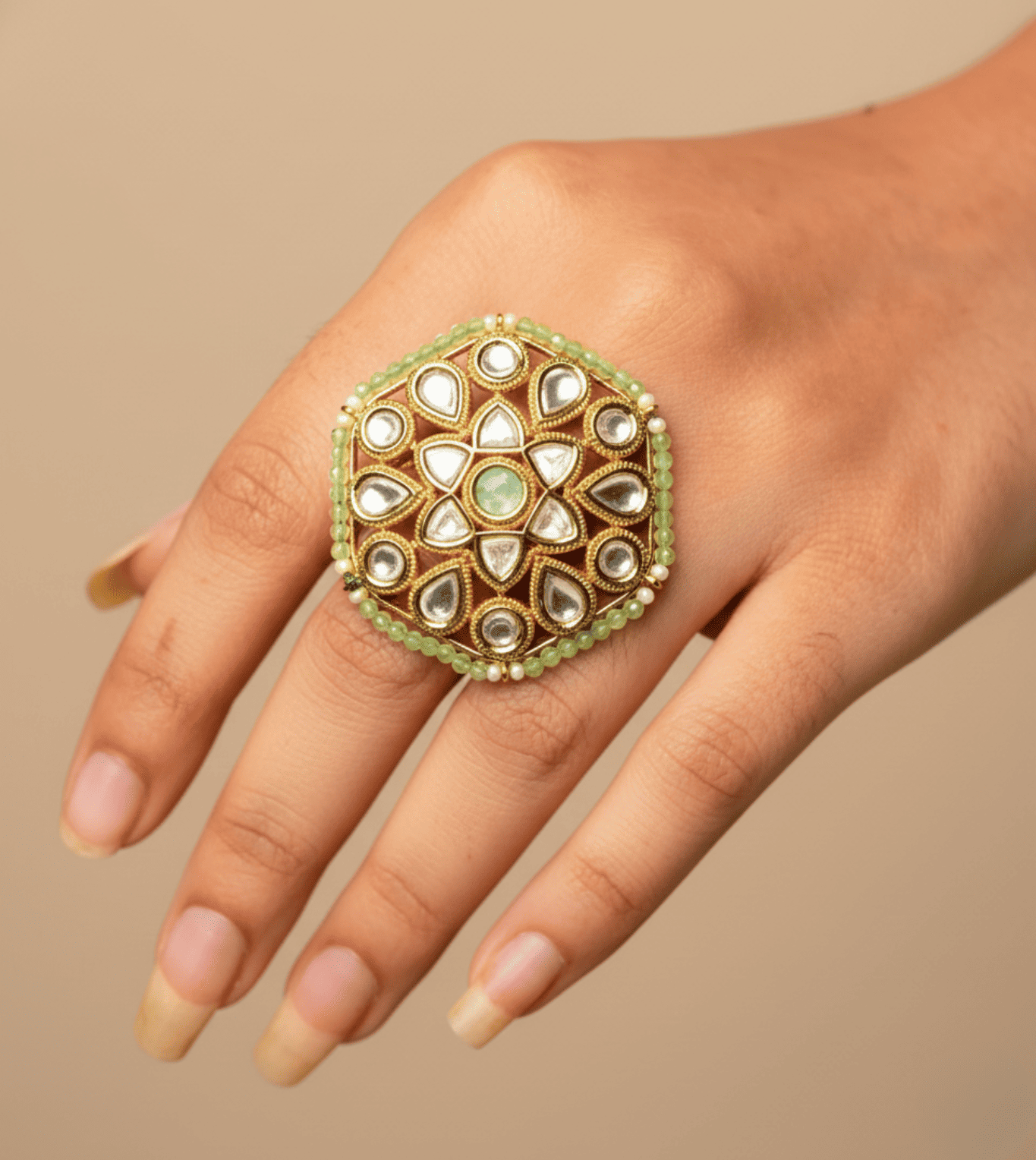 Hexagon Pearl Artificial Ring