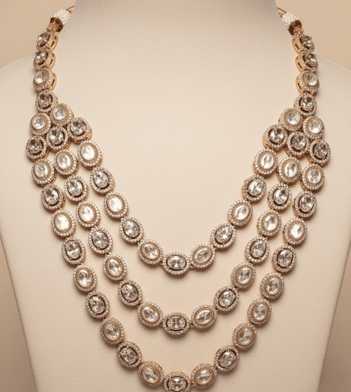 Layered American Diamond Zirconia Flower Studded Necklace Set